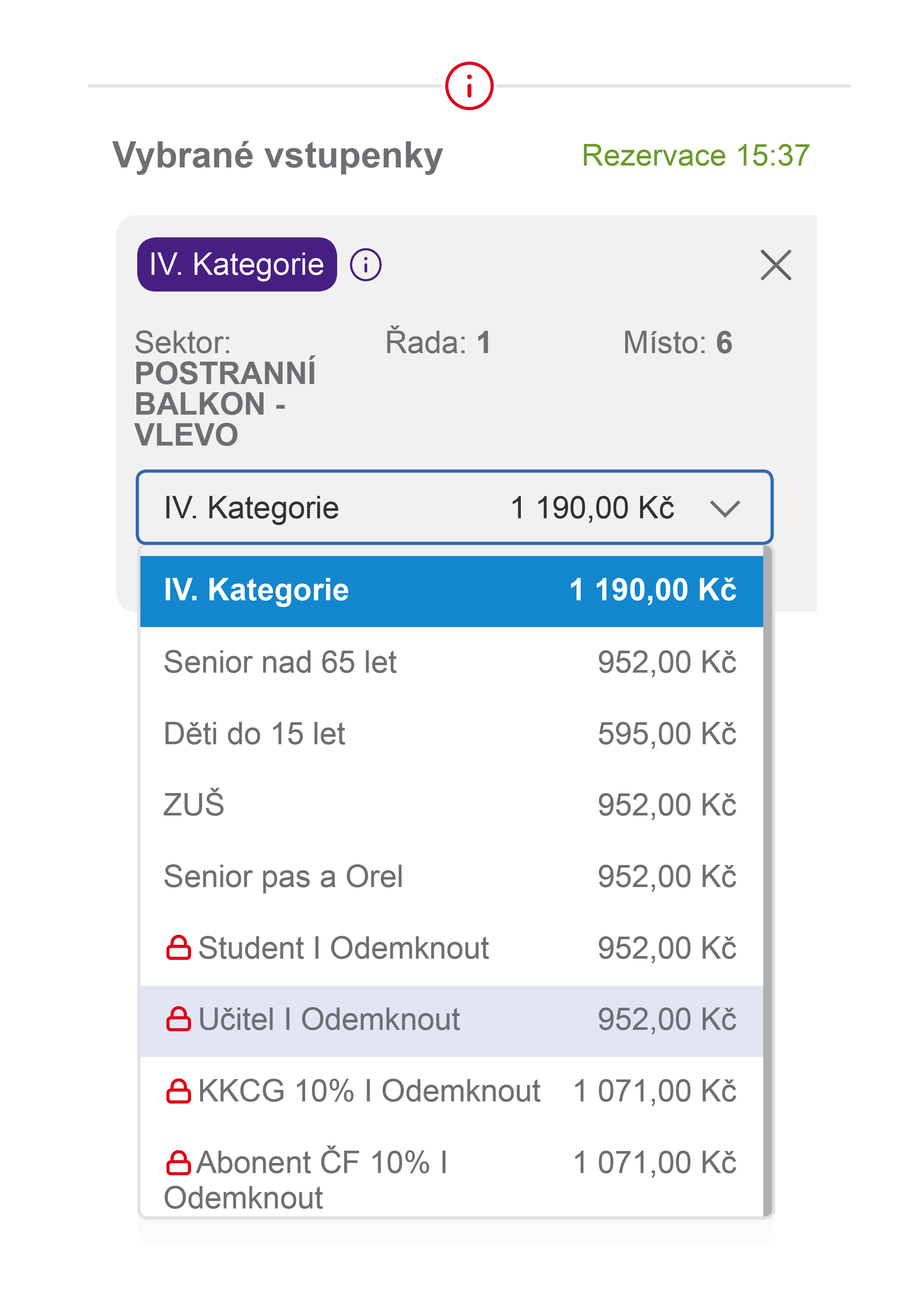 Discounts must be applied during ticket purchase, either after selecting a seat or in the shopping cart. Subsequent discount application is not possible.